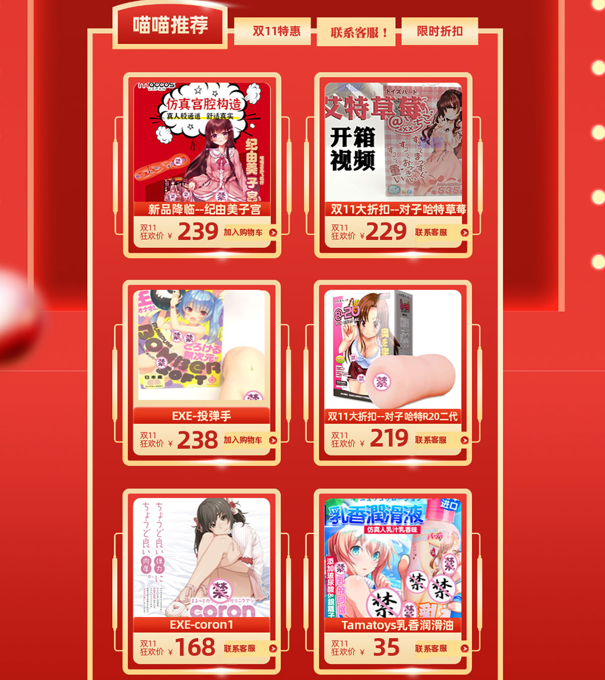 号外号外~~~~~ 双11活动已经开始,需要的玩家联系淘宝客服~ 活动信息在淘宝店铺首页查看。