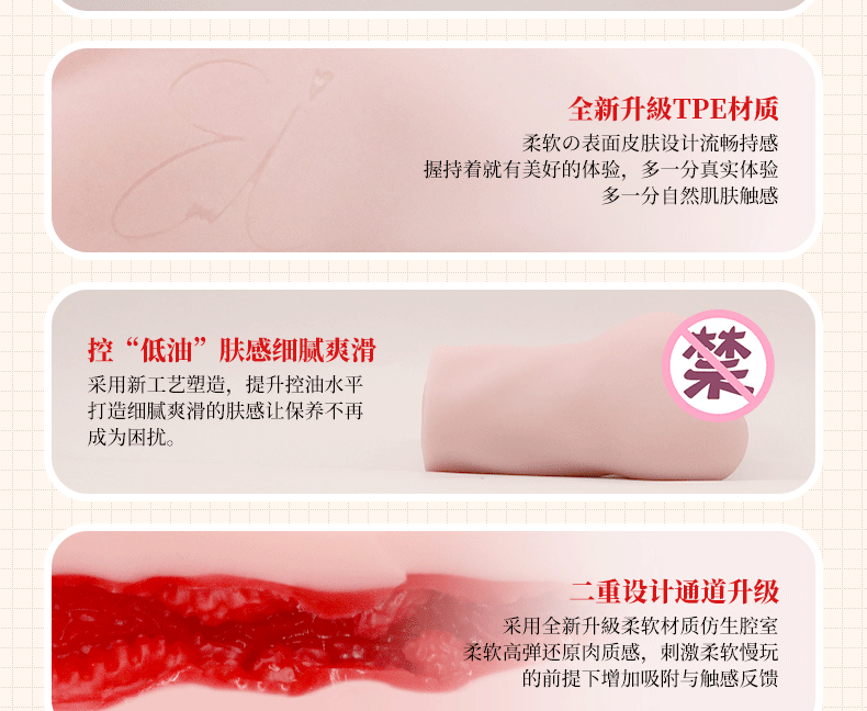 可见很多细小的k颗粒,有几块不太大的突起。 这种层层叠叠的褶皱理论上符合真人的体内结构。 因为材料不硬,包裹也有了保障。摩擦起来配合润滑油,我试了粘稠和稀疏的润滑油,效果都是可以。进入里面到底了,这时候是最shufu的。
